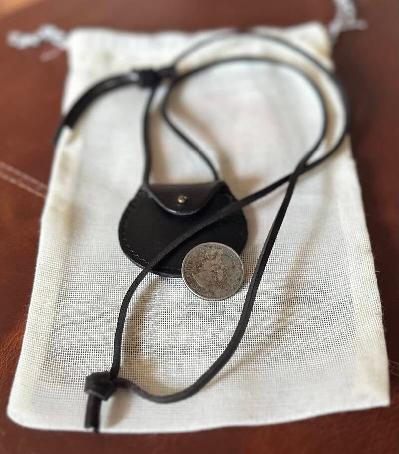 This leather pouch necklace from Madewell holds a quarter inside.