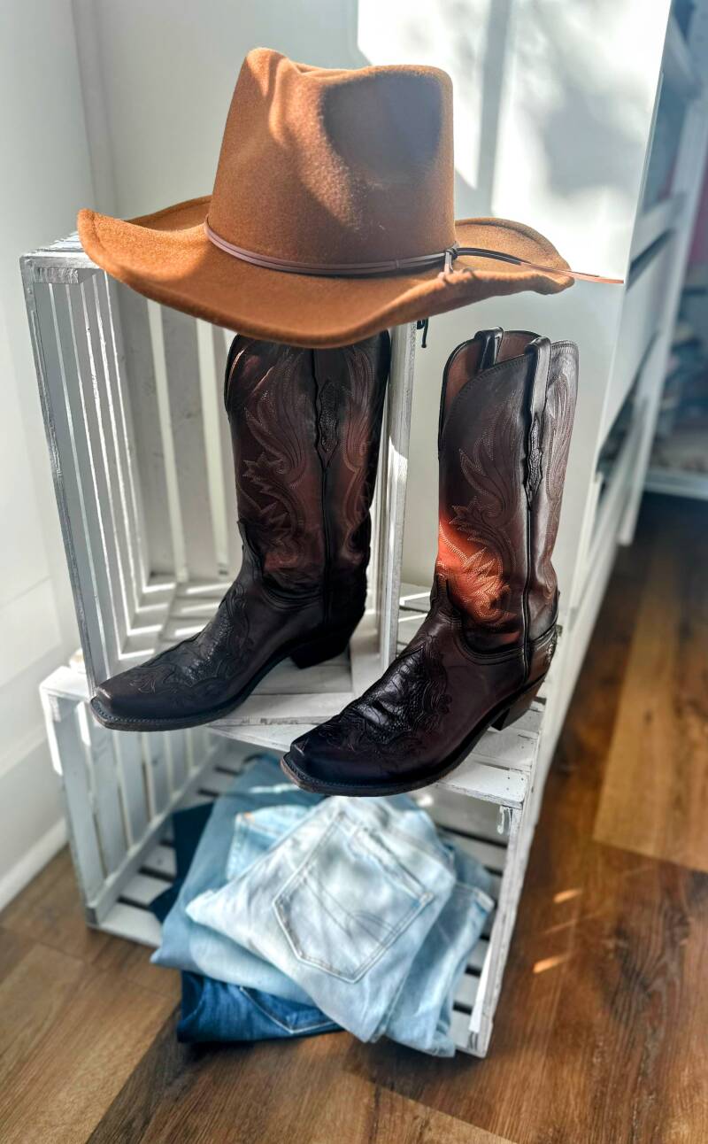 In March 2020, as we prepared to relocate from Vermont to Tennessee, I wore these Lucchese boots (which I snagged at a fantastic sale from Sierra Trading Post) for every virtual interview and for each day we finalized the closing on our house remotely. Yes. It took us multiple days to complete the closing process for a home in another state during a pandemic. Those boots became the foundation of my outfits during that time, serving as a tangible reminder of our aspirations, speaking our intentions into the universe, and a way to manifest the future we were building together.