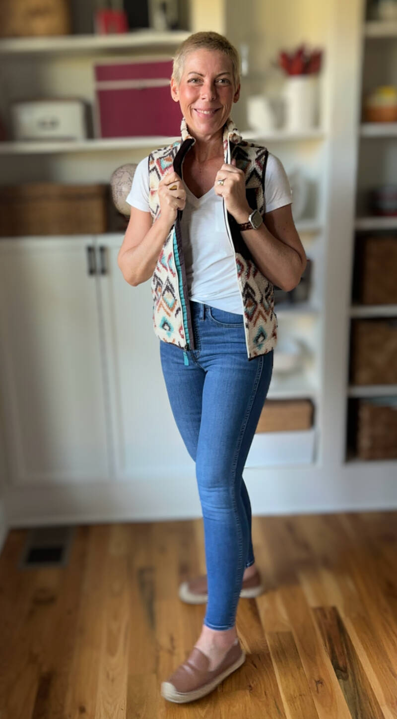 2. Yes, denim with denim has been a trend that I took longer than I’d like to admit to jump on board with. Growing up when we did, it was a major faux pas at one time. I think it is here to stay and I’m having fun with it!